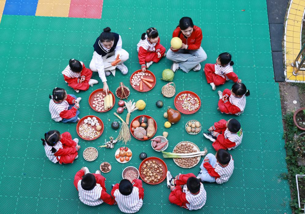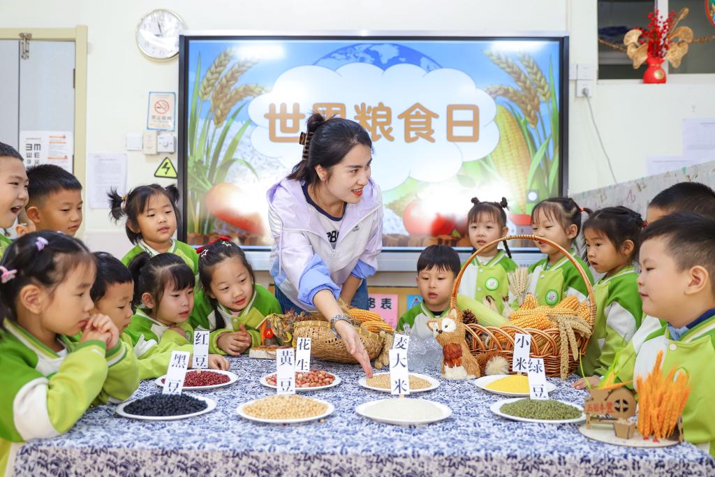 河北省唐山市海港经济开发区幼儿园,老师向小朋友普及粮食节约知识,并通过剥玉米等操作,让孩子们在体验中学会珍惜粮食。天津市滨海新区可爱蜗幼儿园的志愿者带领孩子们认识粮食作物,激发对农业和粮食安全的兴趣。