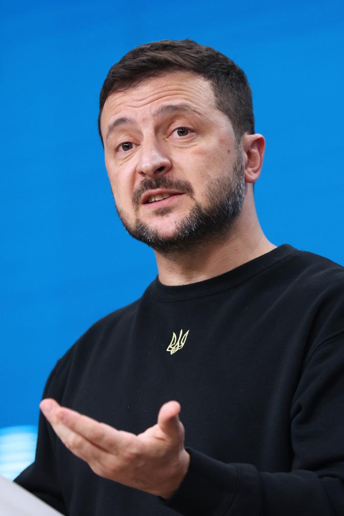 2024年10月17日,在比利时布鲁塞尔,乌克兰总统泽连斯基参加新闻发布会。