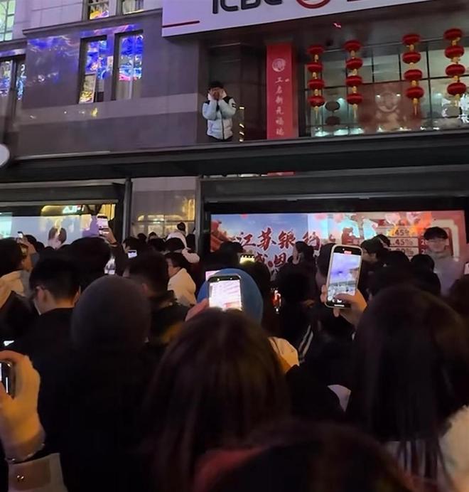 1月1日,江苏网友发布视频称,在2025年12月31日晚无锡苏宁广场跨年活动中,一名男子为寻找最佳拍摄视角,爬上公交站台,引发围观。视频中可见,男子跪坐在站台顶上,下方是密集人群,还有围观者调侃“你下得来吗”。