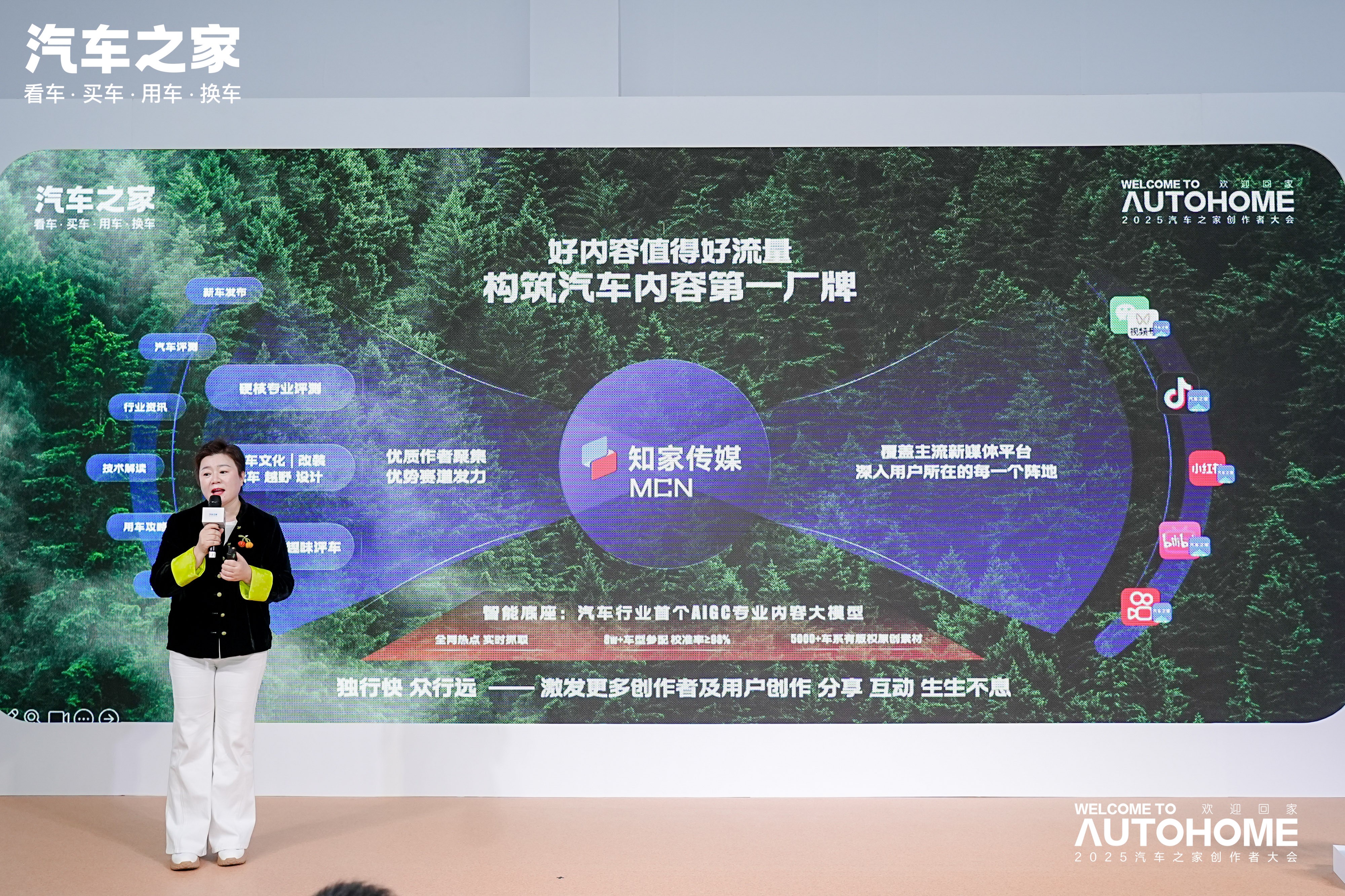 会上,汽车之家总裁王秋凤正式发布汽车之家内容生态升级与拓展战略,致力于构建“中国最大的内容服务平台”。在平台内部,战略聚焦于强化赋能体系,核心举措包括打造汽车内容领域头部厂牌——知家传媒MCN,并推出“知家万象”平台。该平台致力于成为高效的内容连接枢纽,计划于12月上线“内容广场”,提供涵盖IP、达人及营销资源的一站式解决方案;同步设立“趋势中心”,实时追踪行业热点;实现品牌与达人之间的“自主下单”及线上履约机制;并通过打通站内外数据体系,量化内容创作价值。此外,平台还将推出汽车专业AIGC大模型,依托海量车型数据与素材资源,为创作者在内容生成与分发环节提供全链路效率支持。