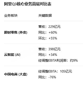 2、即时零售虽然营收增长了,但仍然亏钱严重。即时零售业务实现收入229亿元,同比增长60%,订单结构有所改善(茶饮订单不再占据主力),但补贴过多仍然拉低利润收益,高管表示下个季度对闪购的投入将显著收缩。